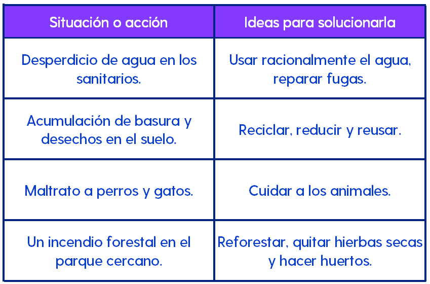 1. En comunidad, considerando lo que ya conocen del tema, aporten ideas para solucionar la situación o acción que seleccionaron, por ejemplo: