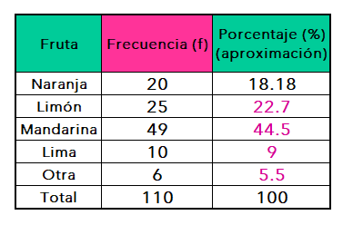 b) ¿Qué fruta prefiere 44.5% de los encuestados?