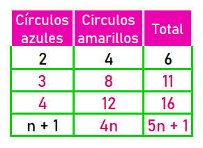 2. Analiza la sucesión y completa la tabla.
